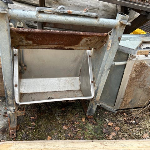 Klauvboks lite brukt. Passer for fikserte dyr siden den kan dras inn på kua fra bak.