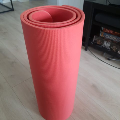 Treningsmatte i lysegrønn farge. Matten er sammenrullbar og egner seg til ulike typer trening som yoga, pilates og styrkeøvelser på gulv. Overflaten har struktur for bedre friksjon mot underlaget. Passer til innendørs bruk for én person.