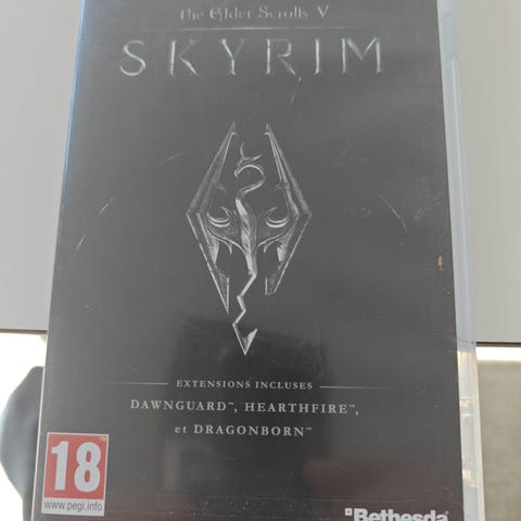 Bethesda The Elder Scrolls V Skyrim Nintendo Switch spill. Fysisk utgave på spillkassett til Nintendo Switch-konsoll. Inneholder hovedspillet The Elder Scrolls V: Skyrim. Aldersgrense 18 år ifølge PEGI-merking på cover og kassett. Leveres i originalt plastcover med innstikk og plass til spillkassett.