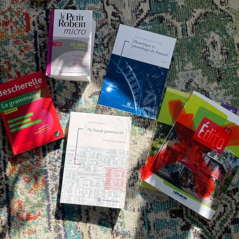 Pensumbøker brukt i årsstudium i fransk