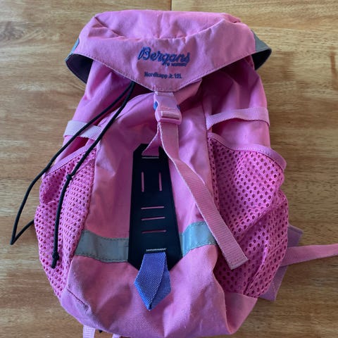 Søt rosa barnehagesekk fra Bergans. Funker som den skal men er litt skitten, så kan med fordel slenges i vaskemaskinen.