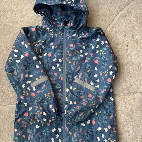 Wheat softshelljakke i størrelse 122 for jente. Jakken er laget i polyester og har et blått blomstrete mønster. Den har glidelåslukking foran, hette og lange ermer. Refleksdetaljer bak gir bedre synlighet. Egnet som ytterjakke i overgangssesonger og til hverdagsbruk.