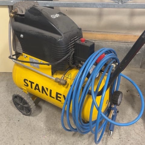 Kompressor av merket Stanley: https://www.jula.no/catalog/verktoy-og-maskiner/trykkluft/kompressorer/verkstedskompressorer/kompressor-012510/