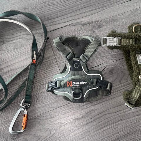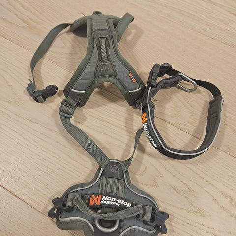 Non-Stop ramble er en tur- og hverdags sele, og er spesielt egnet til valper eller hunder med kraftig kroppsbygning da den er svært justerbar. Selen har refleks og håndtak. Kobbelet festes på ryggen, under magen for sporline eller foran for mild antitrekk. Siden størrelsene overlapper hverandre er disse to selene fine til valper i vekst, 2 seler for under prisen av én.