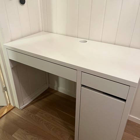Praktisk og kompakt skrivebord. Veggen i skrivebordet er magnetisk. Nypris på IKEA kr. 1995. https://applink.ikea.com/tY8M9r9M4w--09903014--no--no