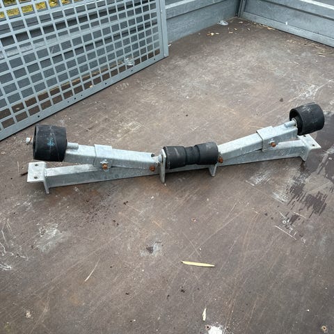 Sandvik mekanisk vinsj i stålkonstruksjon. Vinsjen består av ramme, trommel med vaier, kjededrift og betjeningsarmer. Det følger med tilhørende stag/deler som vist på bildene. Enheten er egnet som basis for reparasjon, restaurering eller som delelager for tilsvarende Sandvik vinsjer eller løfteutstyr. Materiale hovedsakelig stål med synlig overflaterust og slitasje.