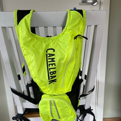 CamelBak Hydrobak drikkesekk i gul farge. Sekken har integrert drikkesystem med væskeblære og drikkeslange med munnstykke. Smal og lett konstruksjon med polstret og pustende ryggpanel og skulderstropper. Egnet til aktiviteter som sykling, løping og tur der man ønsker enkel tilgang til drikke underveis.