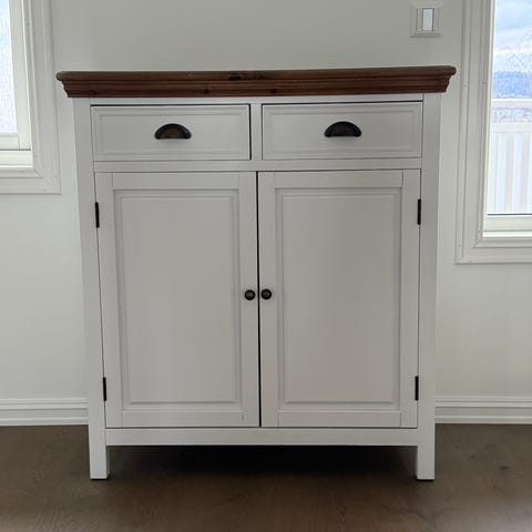 Utskjært et hull i bakkant i venstre skap