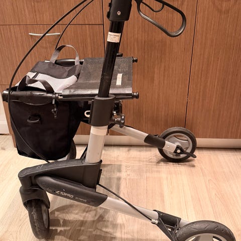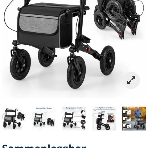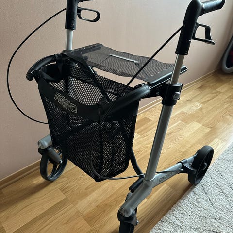 Som ny Movu rullator selges da den ikke blir brukt. Er kun prøvd ett par ganger og alltid innendørs. Følger med sete og to vesker