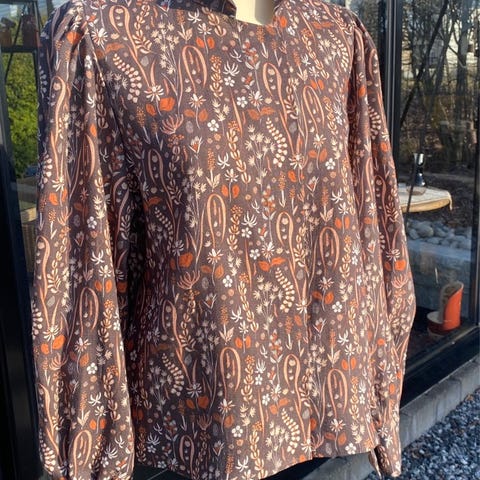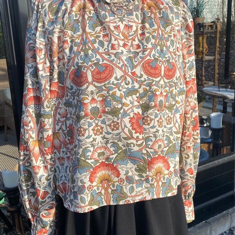 Zara skjorte for dame i størrelse XXL. Skjorten er flerfarget med paisley- og blomstermønster i ulike nyanser. Materialet er silke med polyester. Klassisk skjortemodell med krage og lange ermer. Passer til hverdagsbruk eller som en lett overdel over annet tøy.
