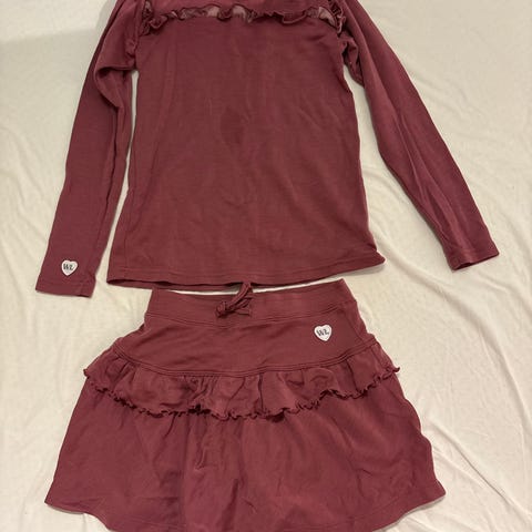 Nydelig rosa dansedrakt med skjørt og brodert detalj i front. Lett og dekorativt sett som gir et fint uttrykk. Merket er Mirella og er i str 4-6 år. Selges kr 100,- + evt frakt. Kan hentes på Persaunet i Trondheim. Fin til dans, turn og ballett.