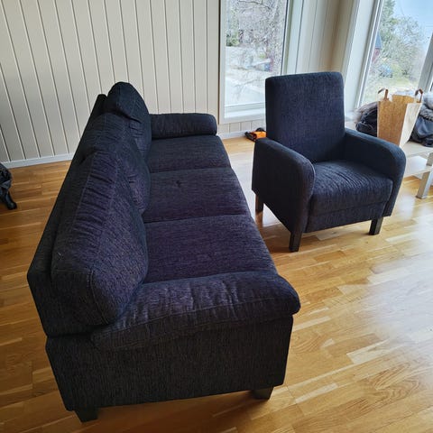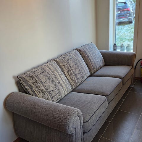 Godt brukt - trenger en rens. Rift under sittepute, se bilde