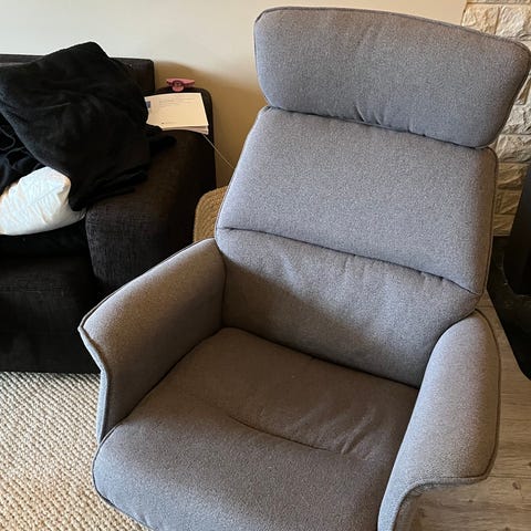 Fin Austin recliner gyngestol med sving. Kjøpt på Bohus juni 2025. Farge mørk brun. Svært lite brukt, fremstår nærmest som ny. Stolen har dessverre stått ubrukt og selges derfor. Ryggen kan tas av ved frakt. Kjøpt på salg for kr. 4.999,- (som er samme pris på salg hos Bohus pr. 06.04.2026). Sittehøyde er 50 cm, sittedybde er 51 cm. Har kvittering på kjøpet. Må hentes på Tonstad, Tiller.