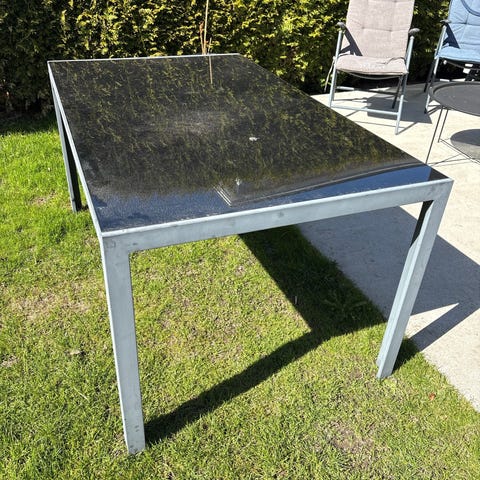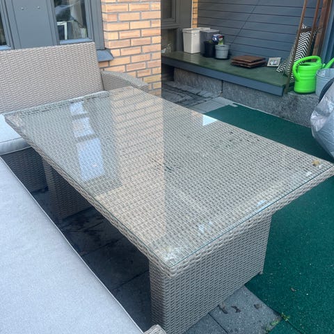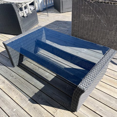 Hagebord sofabord i kunstrotting med glassplate grå