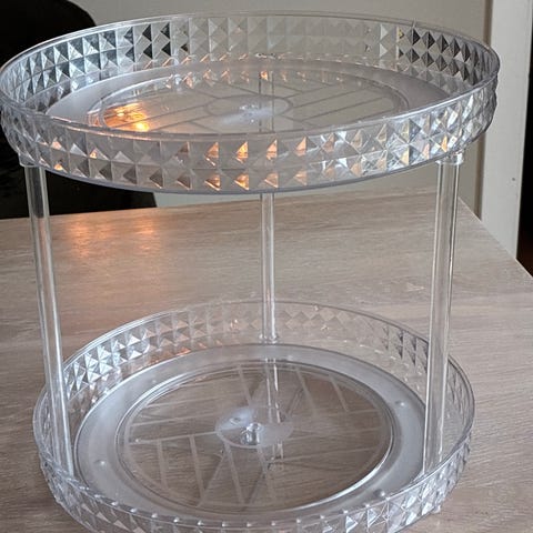 Roterende oppbevaringsstativ for sminke og annet fra Clas Ohlson selges. Pent brukt og roterer som det skal.