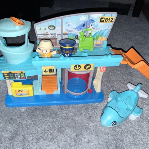 Fisher-Price Little People lekesett flyplass med fly og figurer.