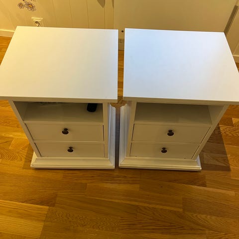 To hvite nattbord fra IKEA selges.