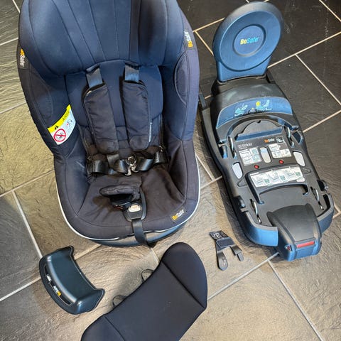 BeSafe iZi Modular i-Size bilsete til baby for barn opptil 15 kg. Setet monteres på i-Size base (ISOFIX) som følger med på bildene. Fempunktssele med polstrede skulderstropper og justerbar hodestøtte. Setet har avtagbare puter for tilpasning til barnets størrelse. Trekket er i mørk, svart tekstil. Egnet som bakovervendt bilsete til baby og småbarn innenfor godkjent vekt- og høydeområde for denne modellen.