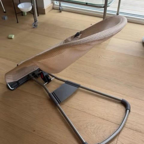 Vippestolen har et ergonomisk design som gir støtte til rygg, nakke og hode. Med flere justerbare stillinger kan stolen tilpasses ulike behov, fra aktiv lek til hvile og søvn. Den er lett og sammenleggbar for enkel oppbevaring og transport.