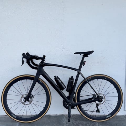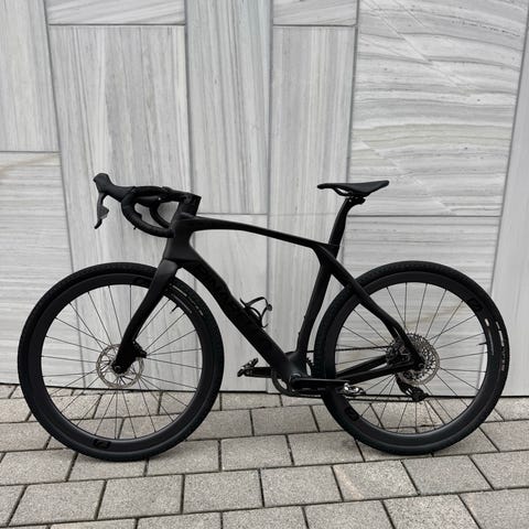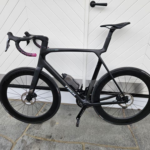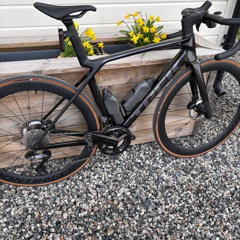 2025-modell (kjøpt i 2024) med ny ramme i 2025. Rammen ble byttet av Trek etter et karbonbrudd og fremstår som ny.