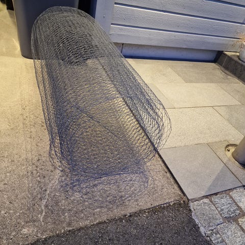 3 ruller hønsenetting selges til en biklig penge. Gjenstående lengde er usikker på alle 3. Selges samlet.