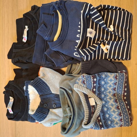 Selger en fin klespakke i størrelse 74, passer ca. til 1-åring.