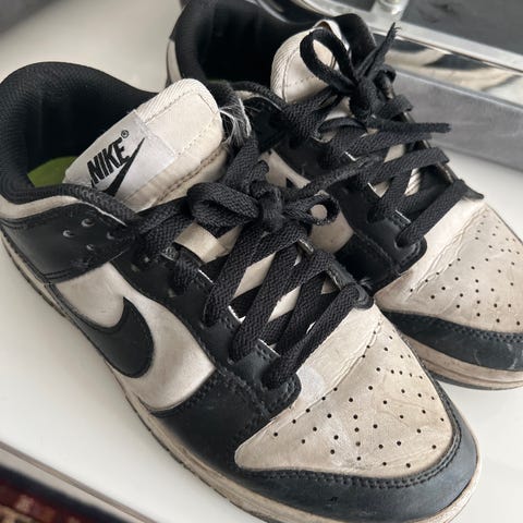 Nike sneakers joggesko i størrelse 41. Modellen har lav profil med snøring. Fargekombinasjon i hovedsak grå og svart med turkise detaljer, inkludert Nike-logo på siden og hælen. Yttersåle i gummi med mønster for grep. Egnet som fritidssko og til hverdagsbruk.