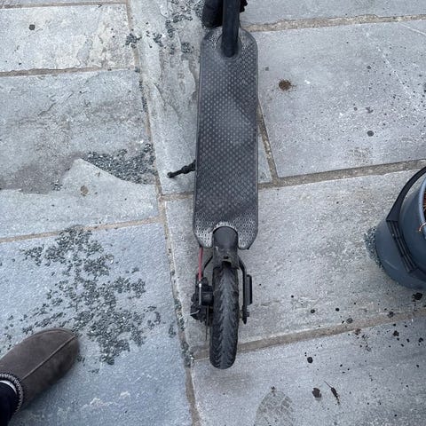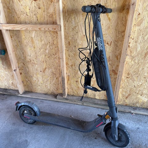 Elektrisk sparkesykkel i svart farge. Modellen har ståbrett med sklisikkert belegg og sammenleggbar styrestang for enklere lagring og transport. På styret er det et digitalt display som viser hastighet og batterinivå. Sparkesykkelen har håndbrems på styret og hjul som er egnet for bruk på asfalt og jevnt underlag. Passer for én voksen bruker av gangen, innenfor anbefalt vektgrense fra produsent.