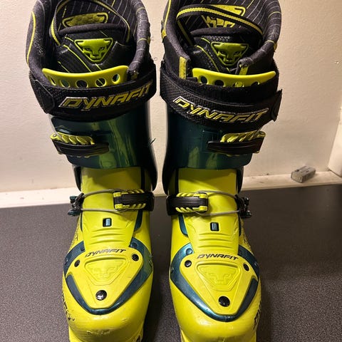 Dynafit skistøvler for topptur/frikjøring. Støvlene har flere spenner og powerstrap for justering og støtte, samt gåfunksjon tilpasset toppturbruk. Det følger ekstra plastbøyle for å stive opp støvlene ved nedkjøring, samt reparasjonssett.