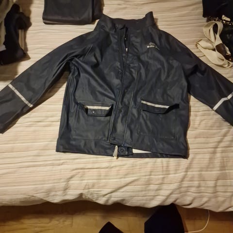 Nytt og pent ,nesten ikke brukt regntøy i str 10 år selges grunnet sønnen min har vokst ut av det :)