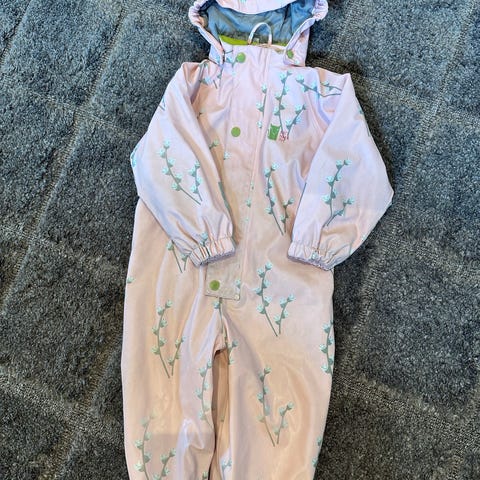 Pent brukt Kattnakken fôret regndress i størrelse 86. Ingen synlig skade eller slitasje. Ingen anmerkninger. Glidelås og knappelukking foran, samt strikk og justeringer som gir bedre passform.
