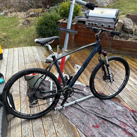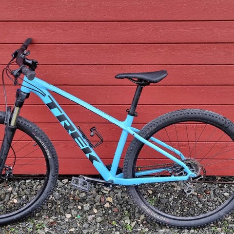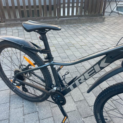 Trek Marlin 5 Gen 3 unisex-utforming med rammestrørrelse XS og 27,5" hjul. Sykkelen har dempegaffel foran, skivebremser og girsystem tilpasset variert terreng.