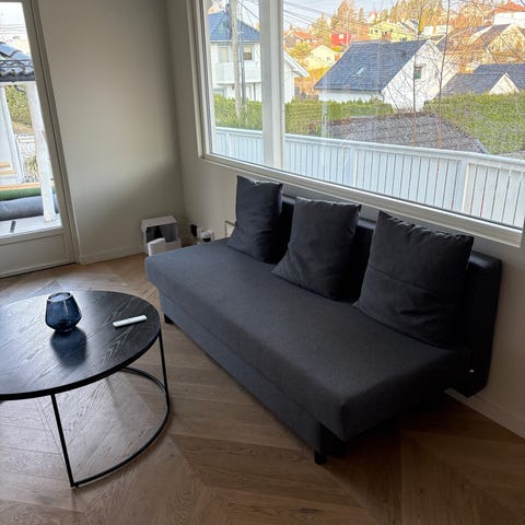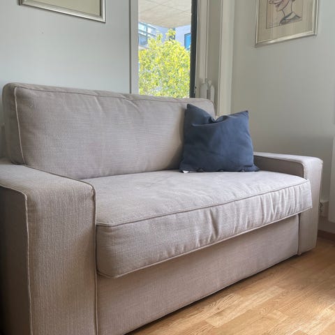 Sofaen gjøres enkelt om til seng med en ordentlig madrass – ikke som vanlige sovesofaer.