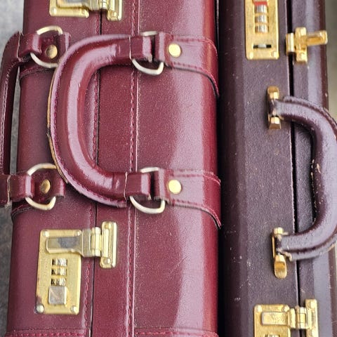 2 gamle kofferten og en nyere "piknik gurv"/koffert