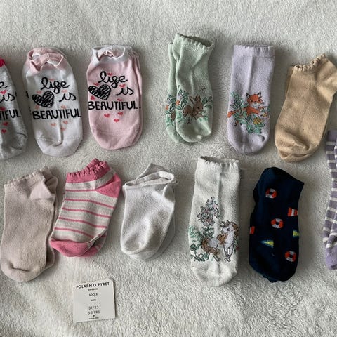 19 par sokker str 31-33. HM. NYE. Selges kr 150 + evt frakt