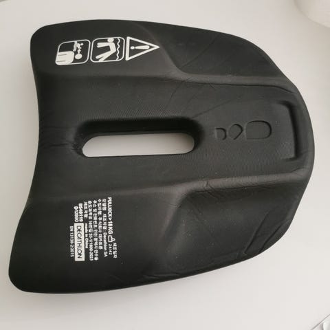 Pullbuoyen er laget av lagvis skum i blått og grått og brukes mellom bena for å gi oppdrift og fokusere på armtak under svømmetrening. Den måler ca. 25 cm i lengden.