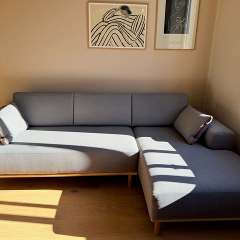 Jeg selger denne grunnet overgang til en litt mindre sofa. Den kan enkelt demonteres i to deler.
