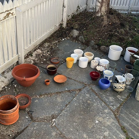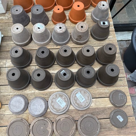 Keramiske blomsterpotter i ulike størrelser. Flere runde potter egnet til bruk utendørs i hage, på terrasse eller ved inngangsparti. Pottene har forskjellige farger og mønstre, og kan brukes til planting av blomster, busker eller andre hageplanter. Selges samlet eller en og en, kun 80kr pr potte