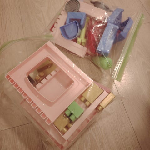 Smoby Maxi Marked inkluderer leke-mat, frukt og grønt, samt kasseapparat med skanner med lys og lyd.