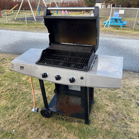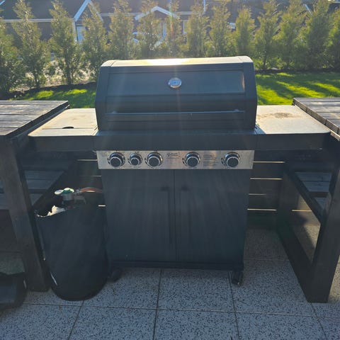 Fungerende gassgrill med 3 brennere, mangler fettbeholder bare, ellers alt funker .