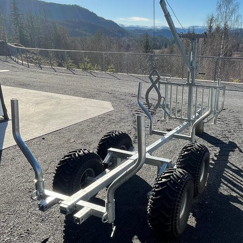 Tømmerhenger med kran til ATV, 4-hjuls boggi, galvanisert