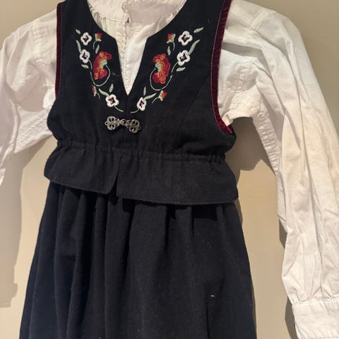 Pent brukt festdrakt kjole fra nameit, en del lo fra siste vask, men har rullet over en del og kan rulles med klesrulle mer (se bilder). Kan vaskes på 40 grader. Jeg vil si den er stor i størrelsen ☺️