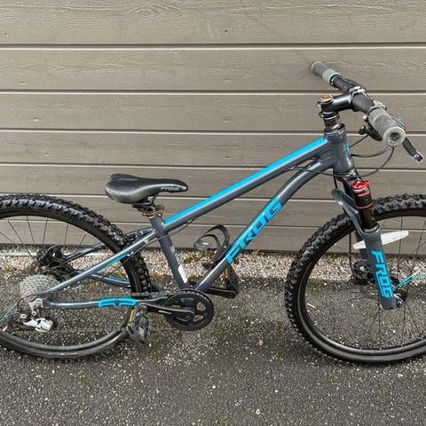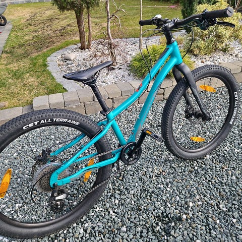 Hydrauliske skivebremser. Skjermer og støtte er montert. Meget pent brukt av jente som nå er 12år, men noen bruksmerker på overrøret (se bilde). Selges grunnet overgang til større sykkel.