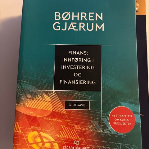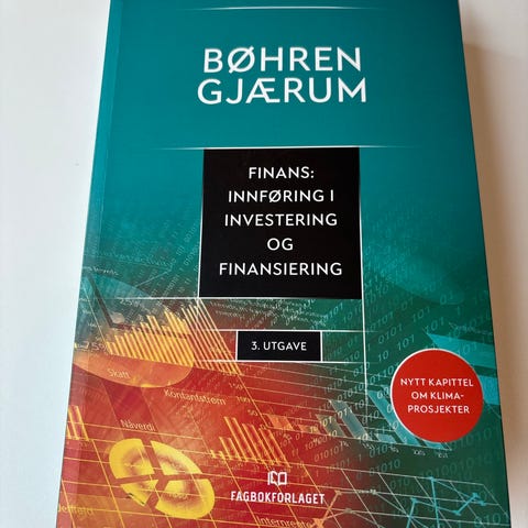Bøhren og Gjærum Finans innføring i investering og finansiering lærebok i økonomi og administrasjon. Boken dekker grunnleggende emner innen finans, investering og finansiering, med vekt på analyse av investeringsprosjekter og finansieringsbeslutninger. Innholdet er tilpasset studenter innen økonomi og administrasjon og kan brukes i undervisning på høyskole- og universitetsnivå. Boken inneholder teori, eksempler og oppgaver knyttet til praktiske problemstillinger i finans.