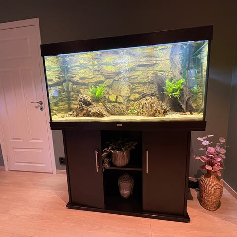 Akvariet er i meget god stand og balanse. Det inneholder i dag ca 12 Malawi og Tanganyika Cicklider både voksne og unfisk og 2 Ancistrus sp. L144 (en jente og en gutte malle). Det er plass til flere fisk om man ønsker det. (Har lagt til en del bilder av fisken på slutten av annonsen).