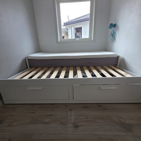 Sengen er mellom 2–3 år gammel. Den er pent brukt med noen merker på hodegavlen, ellers i fin stand.