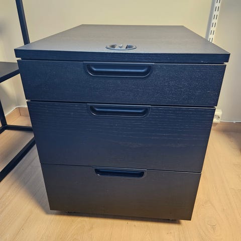 Kommode, skuffeseksjon, nattbord fra IKEA. Brukt til å ha under skrivebordsplate