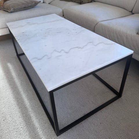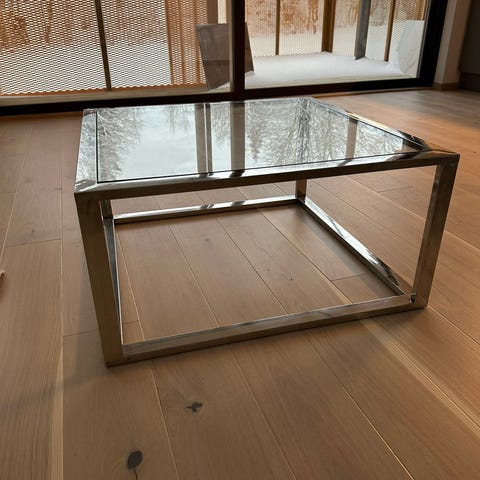 Robust firkantet sofabord i tre. Bordet er solid og velholdt.