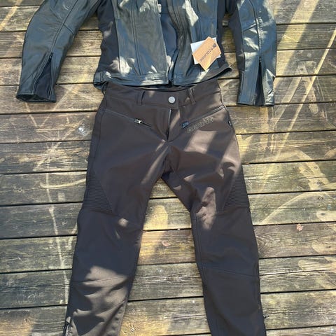 Begge vestene er størrelse XL, men den ene er sydd inn. Passelige over motorsykkeljakke str 52.