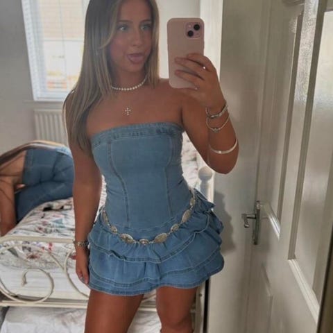 Behagelig causual comfy komfortabel kvalitet elegant stilfull rimelig mote merkeklær bærekraftig gjenbruk secondhand denim kjole jeanskjole blå kjole figursydd kjole b young byoung sommerkjole hverdagskjole casual kjole S 36 vårklær trendy kjole glidelås kjole